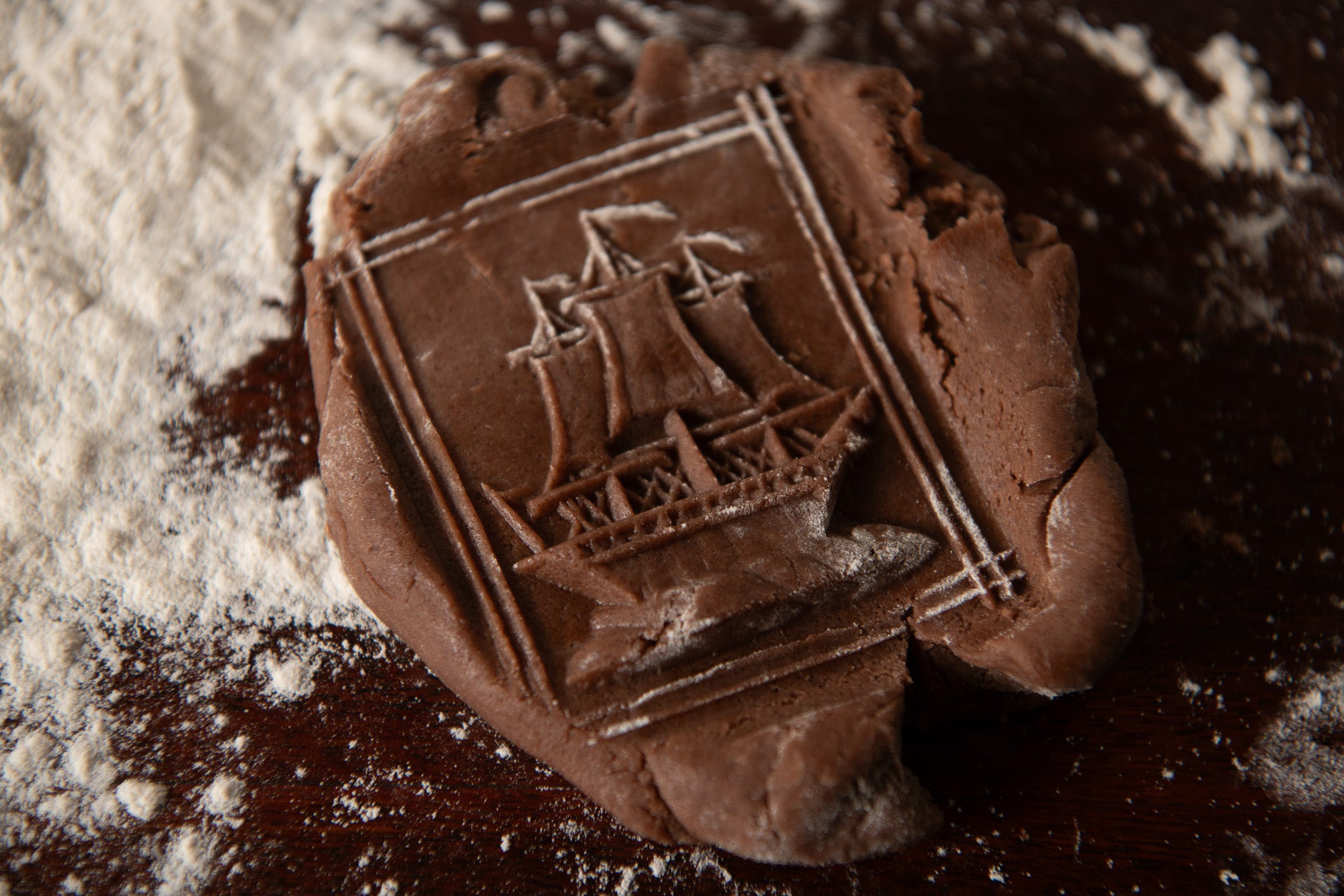 This mold features a three-masted ship, a familiar emblem in Dutch and colonial imagery. Seafaring vessels of this type carried goods, news, and people across the Atlantic, linking Old World ports with the growing communities of early America. Ships also appeared frequently in period decorative arts, symbolizing commerce, travel, and connection between continents.